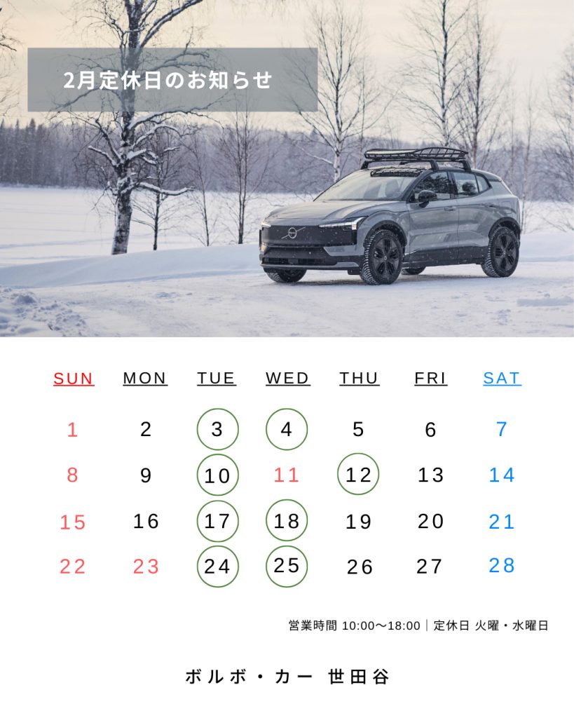 ボルボ・カー世田谷は、 毎週火曜日・水曜日を定休日とさせていただいておりますが、